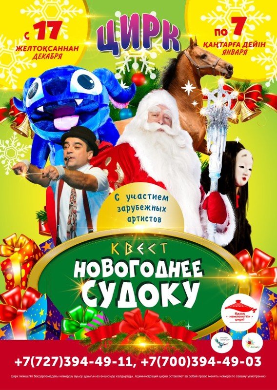 Казахский государственный цирк приглашает Вас посетить удивительное цирковое представление и окунуться в мир Новогоднего таинства и волшебства!